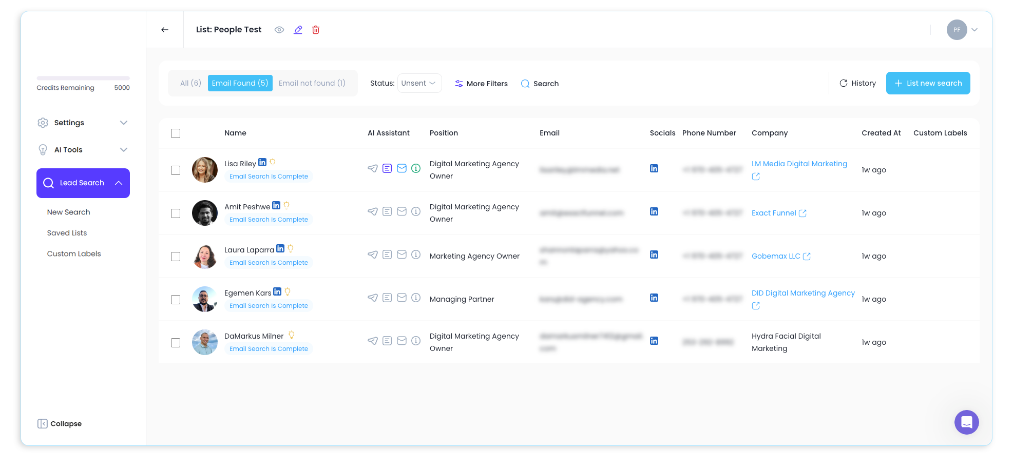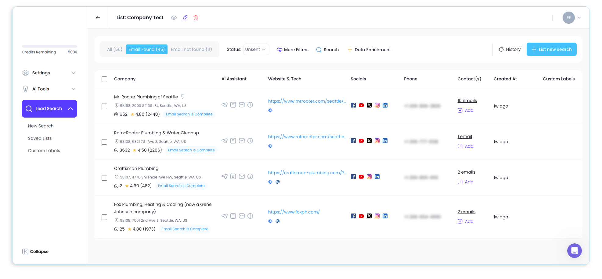 If you have used any lead generation tool before, you should be able to navigate our leads tool.