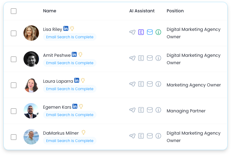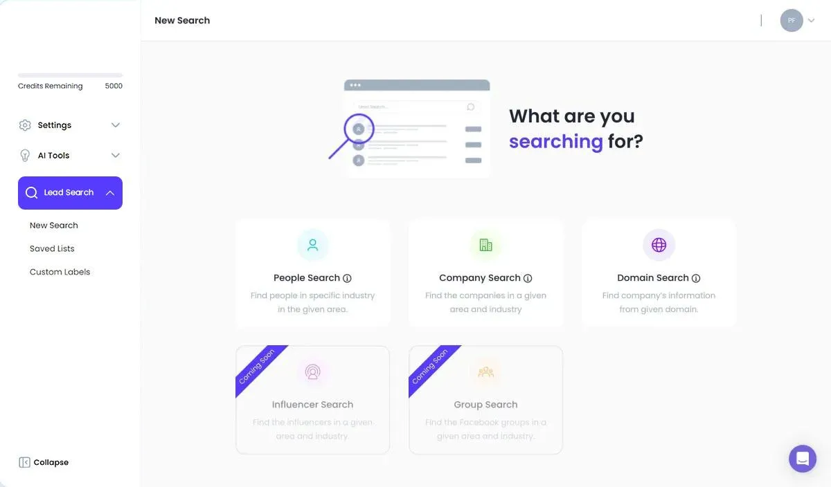 You can find your ideal prospects through the People, Company, or Domain Search. Giving you more options to find and connect in just a few clicks.