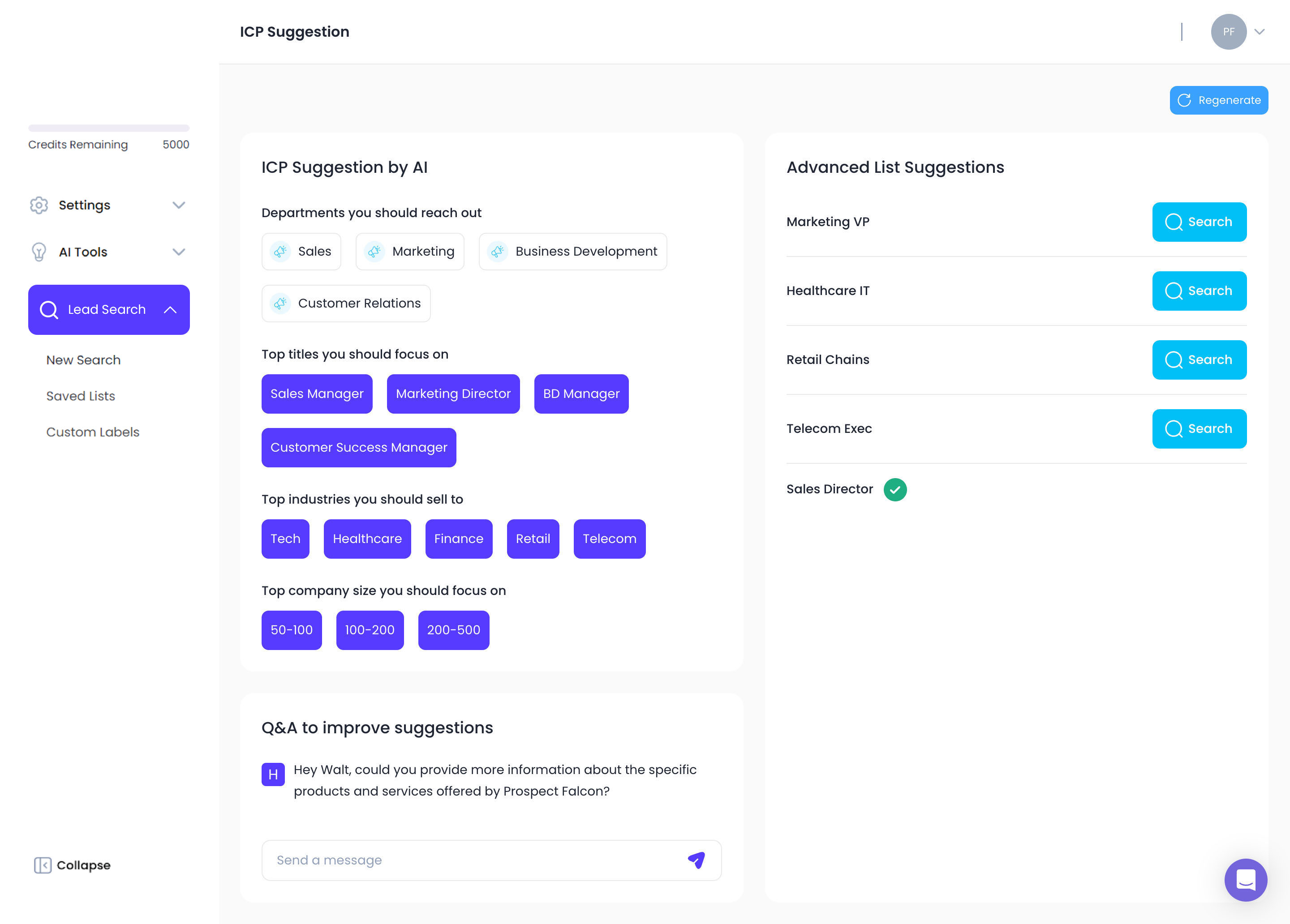 Use the training you've provided the AI on your business to understand the departments you should reach out to, top titles, top industries you should sell to, and the company size you should focus on for maximum results.